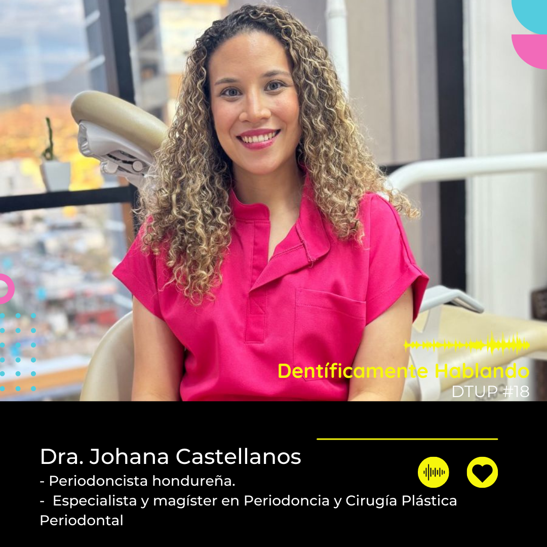 En este episodio de Dentíficamente Hablando # 18, recibimos a la destacada Dra. Johana Sofía Castellanos, periodoncista formada en la Universidad de Buenos Aires, para abordar temas esenciales de la periodoncia actual, la formación académica, la ética clínica y la realidad del ejercicio profesional en Latinoamérica. Acompaña a los doctores, Juan Vanegas y Ernesto Salazar en una charla llena de valor académico y perlas clínicas. La Dra. Castellanos comparte su experiencia personal, su pasión por la cirugía periodontal regenerativa y su visión sobre cómo debe ser la enseñanza responsable en la odontología actual.